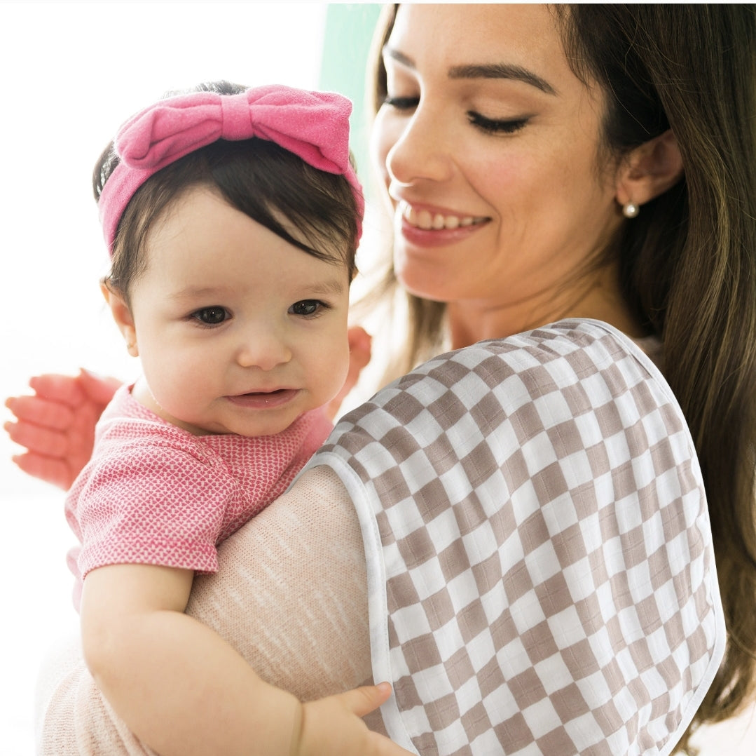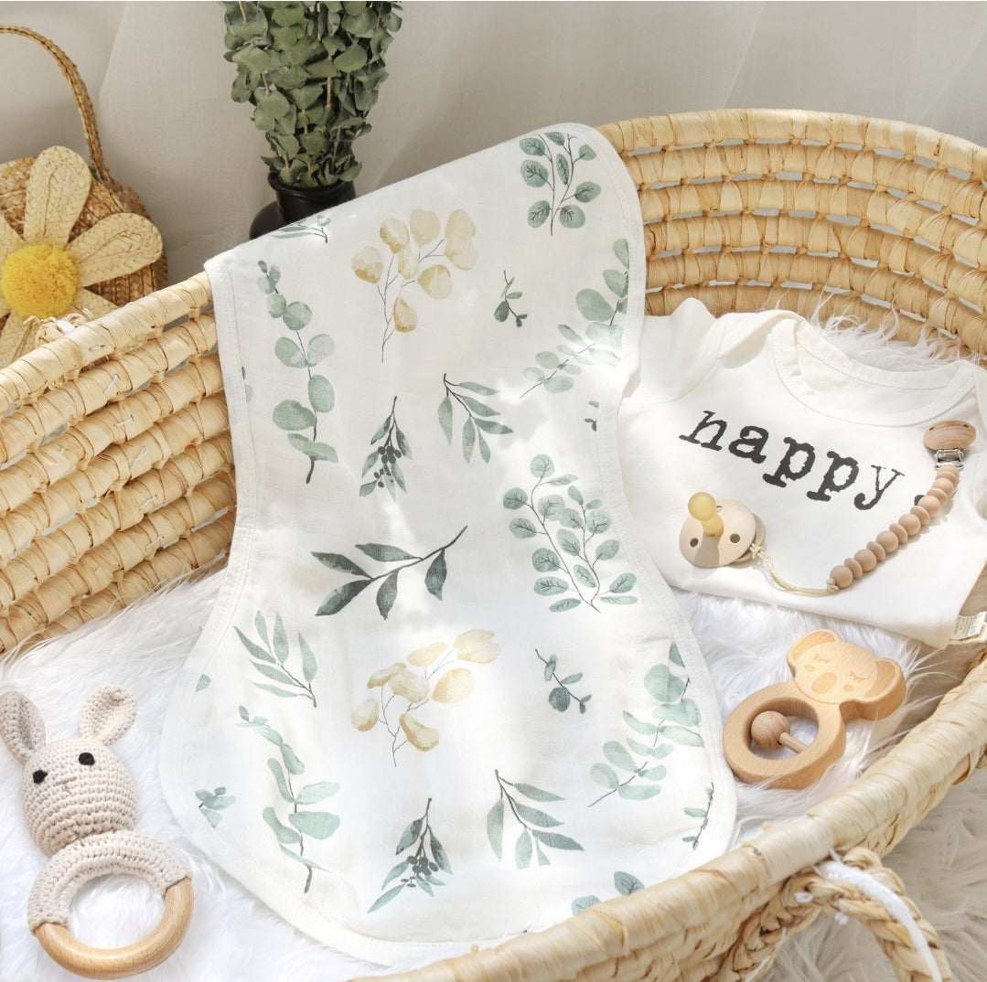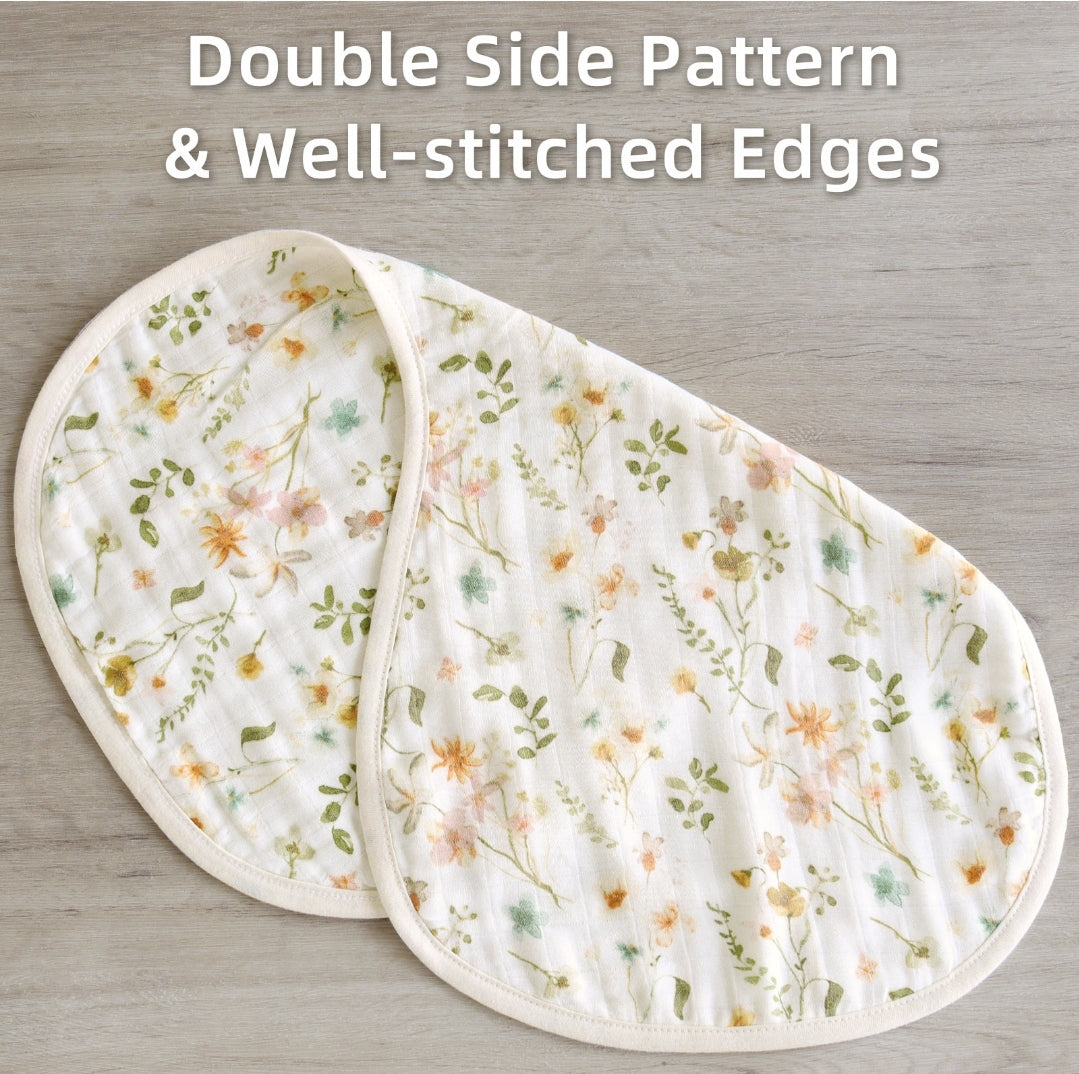 Soft, absorbent, and gentle on newborn skin. Our 6-layer bamboo and cotton burping bibs provide excellent coverage and comfort for everyday use. Measurements are 28cm x 54cm.